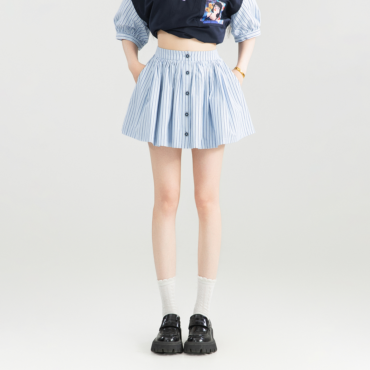 弹力松紧腰百褶半身裙女春夏秋新款 a字小个辣妹学院JK黑色短裙子