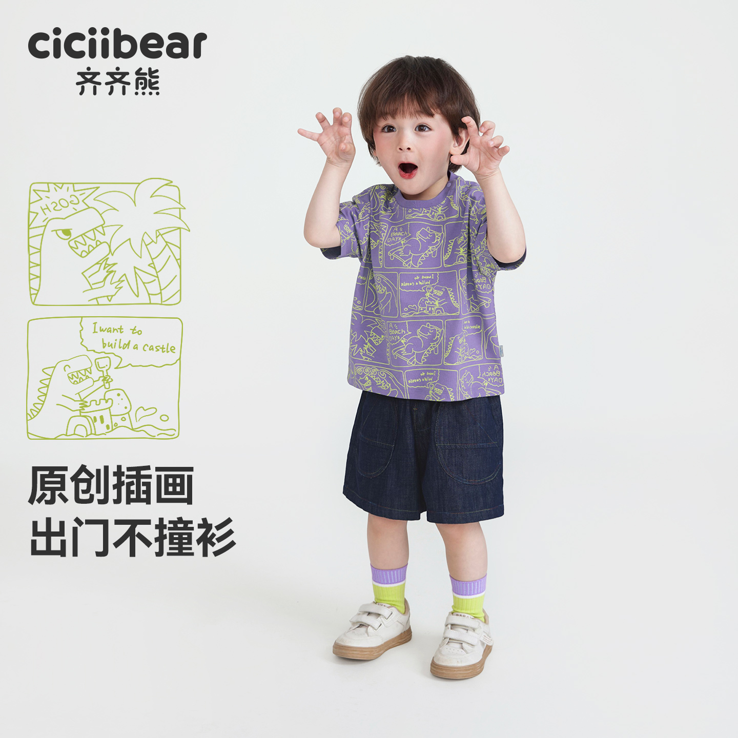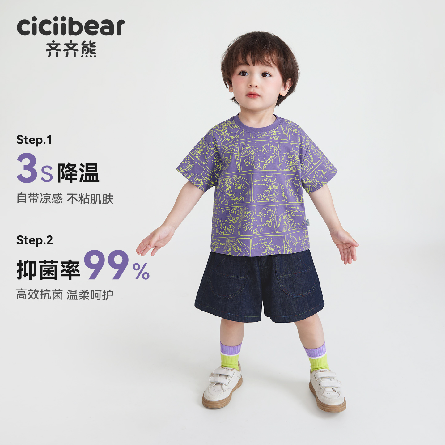 凉感抗菌 T恤短裤 齐齐熊男童短袖 夏季 两件套女宝宝运动儿童 套装
