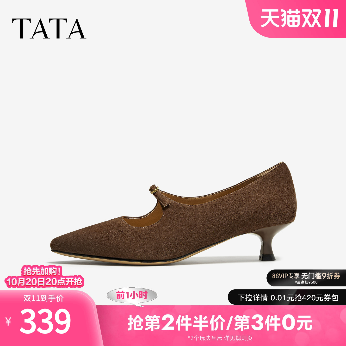 真皮浅口单鞋 新款 子E1T1DCQ5预 女2025秋季 百丽复古粗高跟玛丽珍鞋