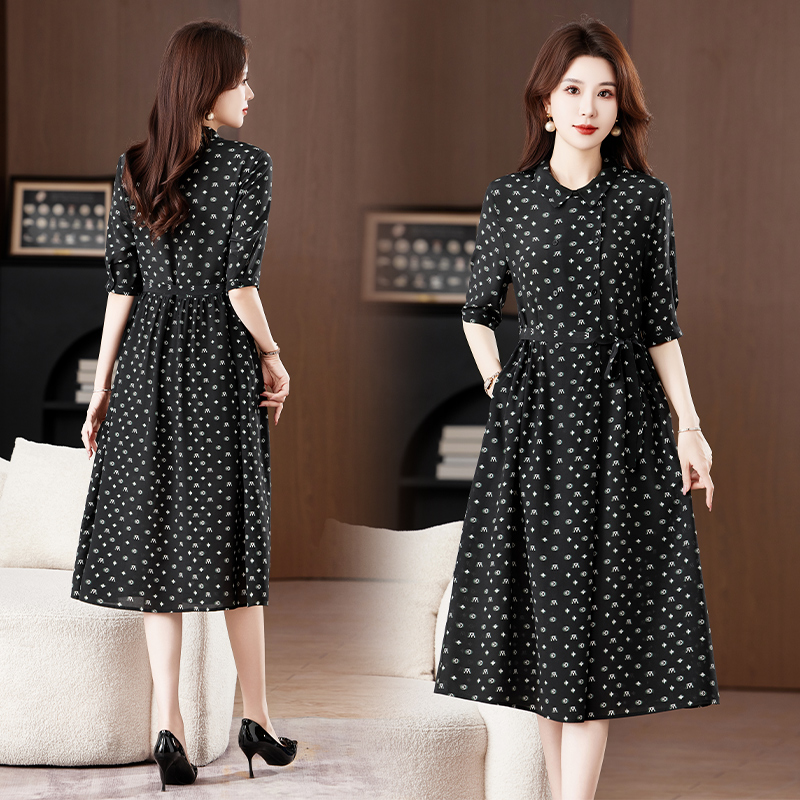 帝柔帝柔黑色连衣裙2025秋季 显瘦通勤 套头高腰休闲腰带简约大码
