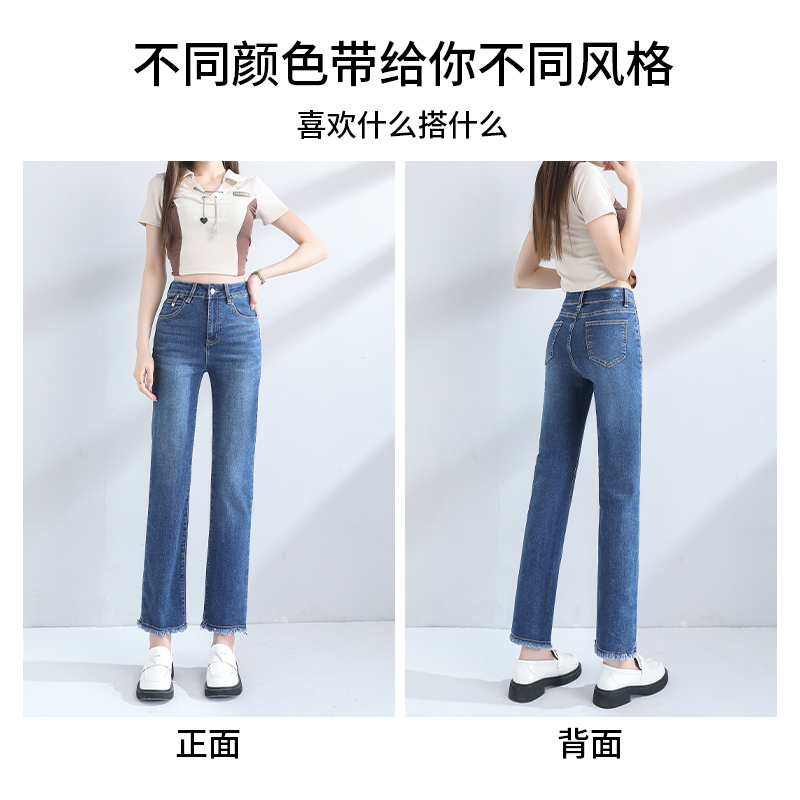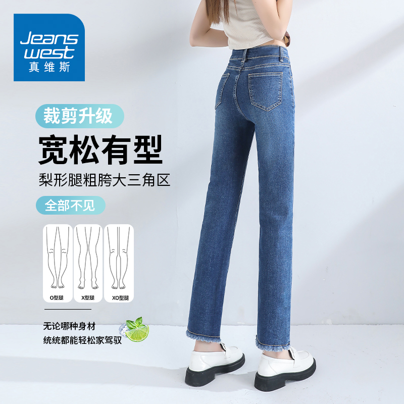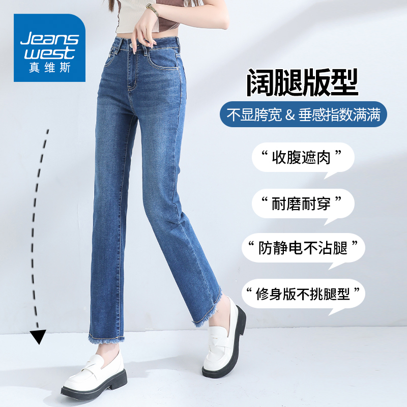 子女 百搭休闲通勤牛仔蓝阔腿长裤 POLOWALK女士直筒牛仔裤 秋冬新款