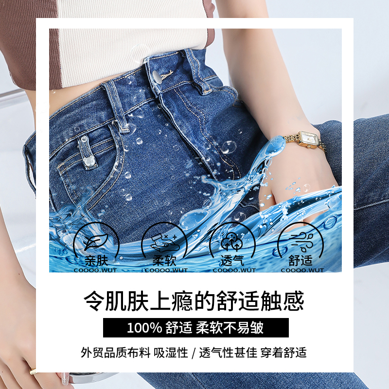 四面弹软轻薄紧身牛仔裤 松紧腰高弹力超薄小脚 女高腰九分25春秋款