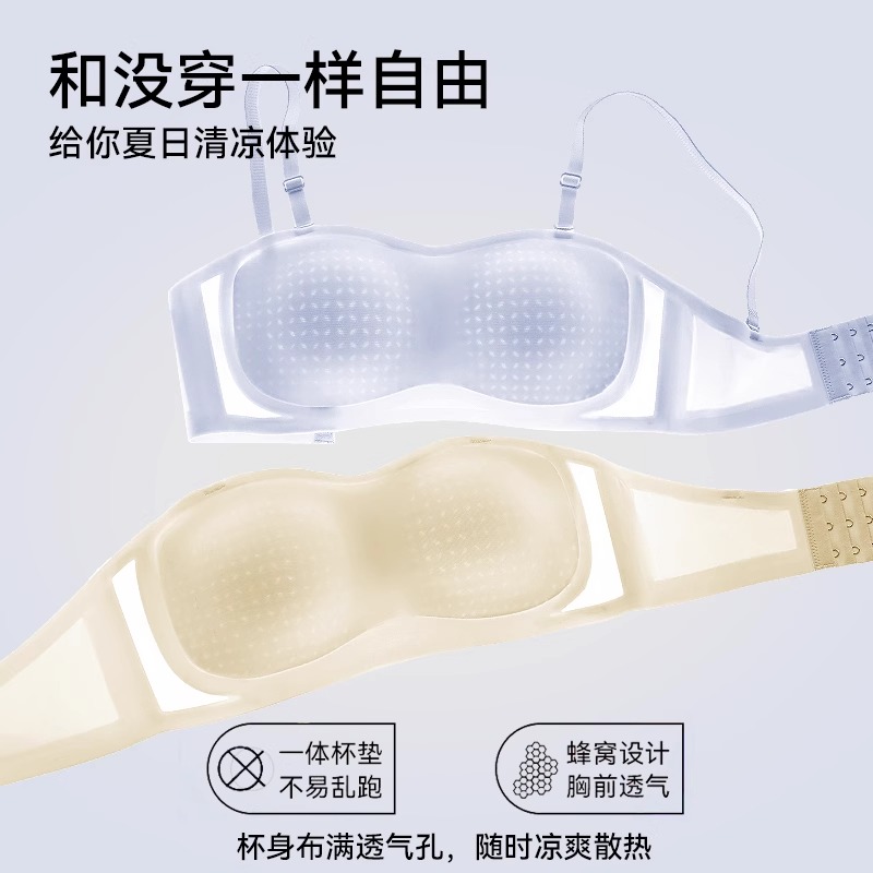 无肩带抹胸内衣女防滑聚拢小胸无钢圈裹胸式 隐形美背文胸罩夏薄款