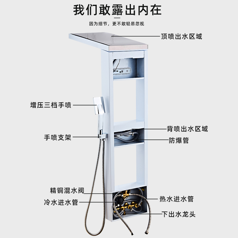 套件 喷头挂墙式 宽体壁龛式 淋浴屏花洒304不锈钢恒温沐浴套装