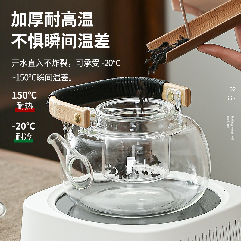 玻璃泡茶壶茶具套装 家用花茶小水壶耐高温加厚耐热过滤煮茶壶茶器