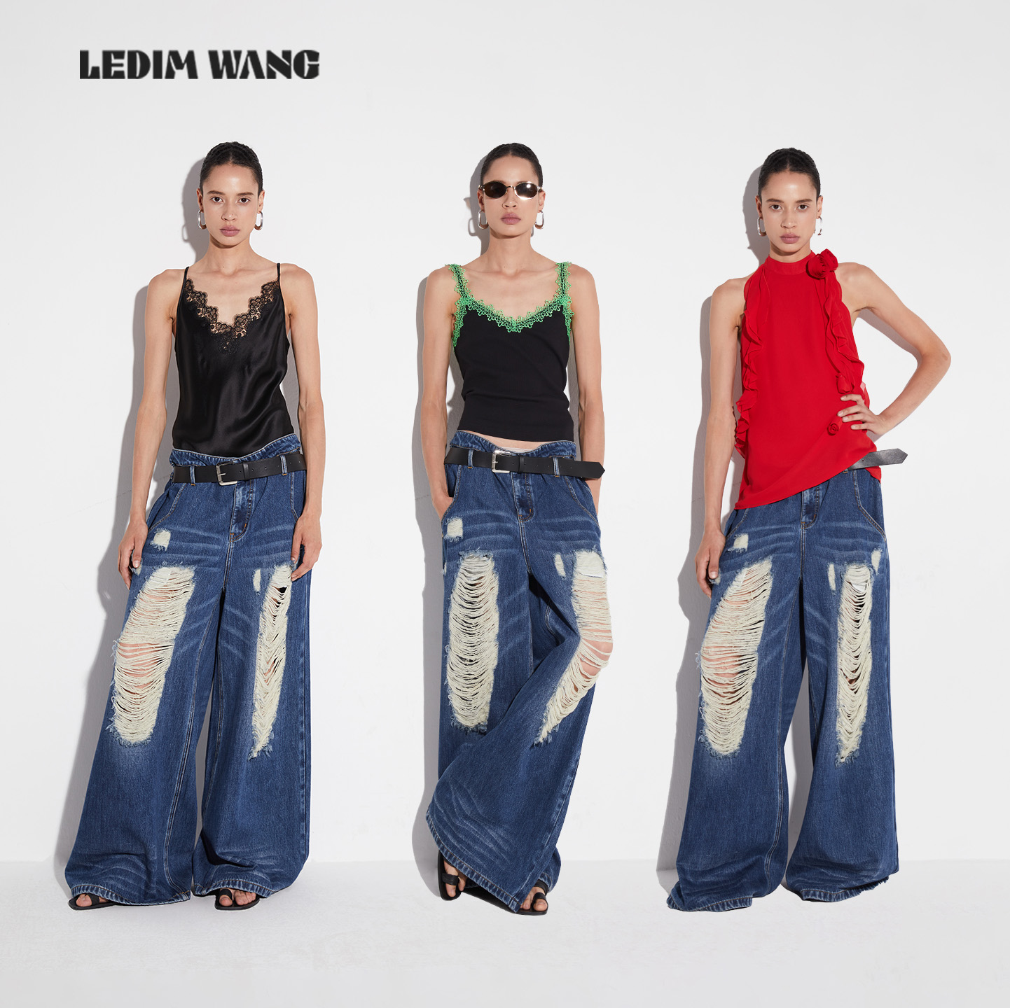 新款 25秋季 复古松弛阔腿裤 双扣经典 LULUALWAYS 牛仔裤 商场同款