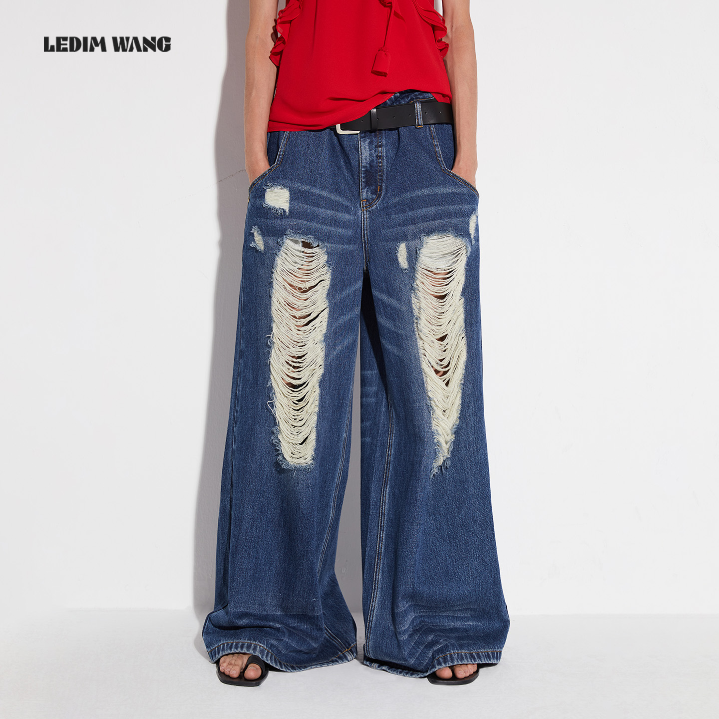 百搭显瘦牛仔裤 时尚 女 2025春秋新款 王家有鱼小个子休闲宽松阔腿裤