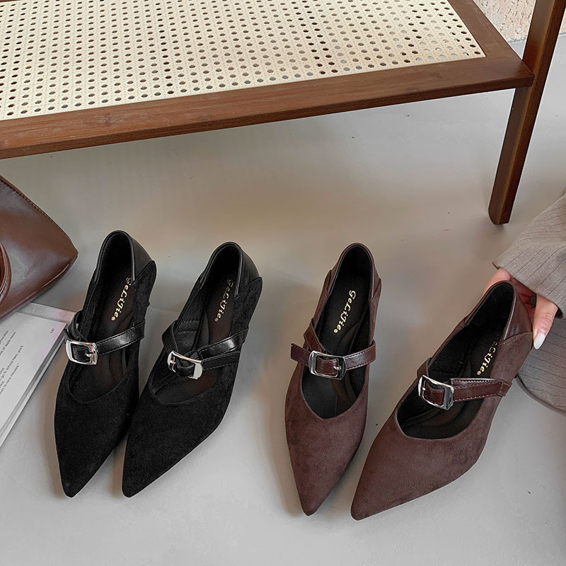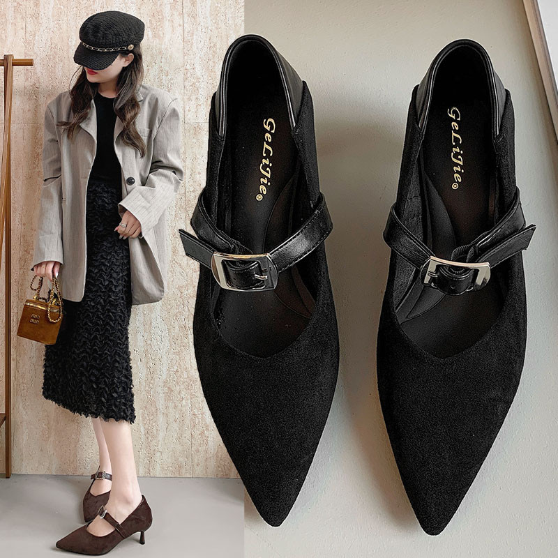 绒面百搭复古气质休闲尖头浅口一字带女 时尚 直销好看2025新款 春季