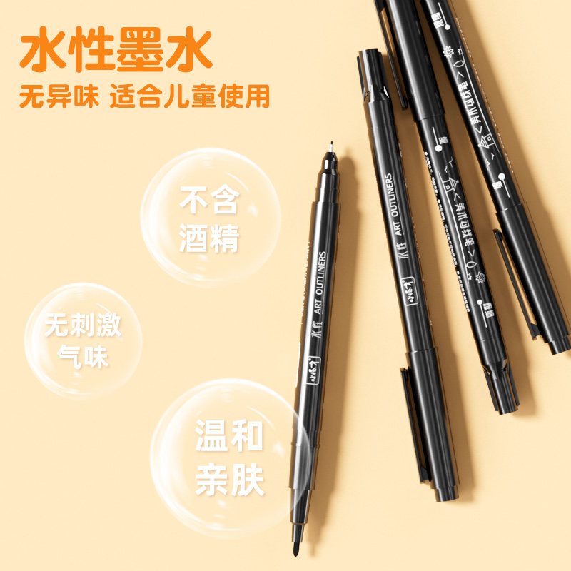 超模君双头勾线笔美术专用儿童小学生油性记号笔黑色防水防油不掉色小双头粗细两头水性幼儿园绘画描边笔速干