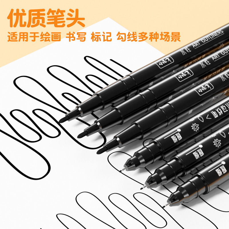 晨光记号笔勾线笔美术专用小学生绘画黑色油性粗细两头双头儿童幼儿园马克笔描边速干防水防油不掉色工地划线