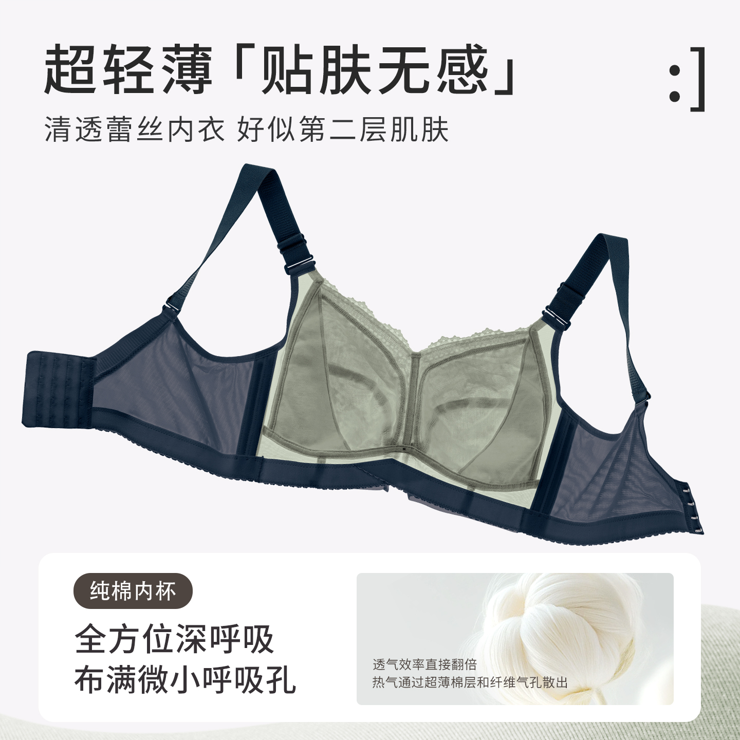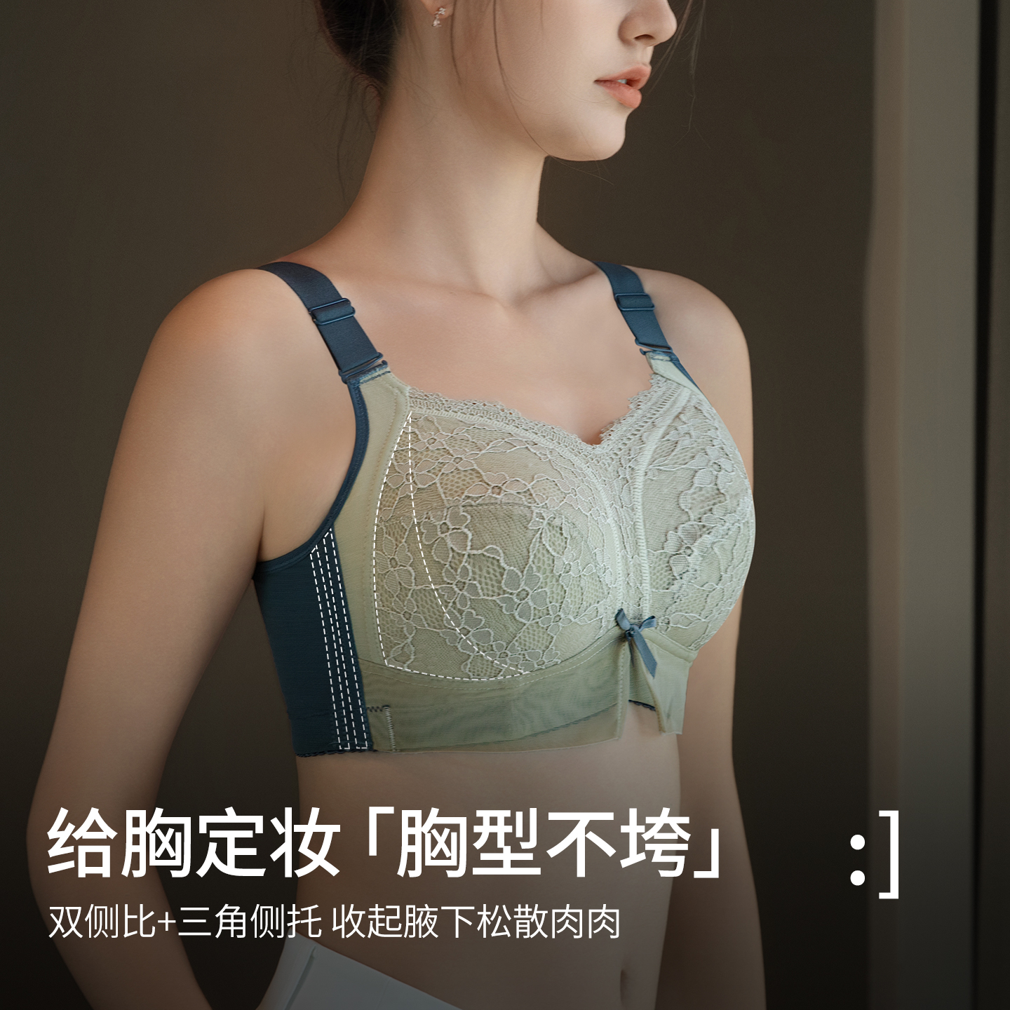 大胸显小内衣大码 胖mm女无钢圈聚拢收副乳防下垂调整型文胸夏薄款