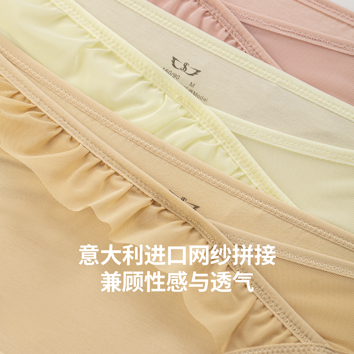 性感抑菌透气网纱中腰不夹臀高叉三角裤 薄款 女夏季 STW莫代尔内裤