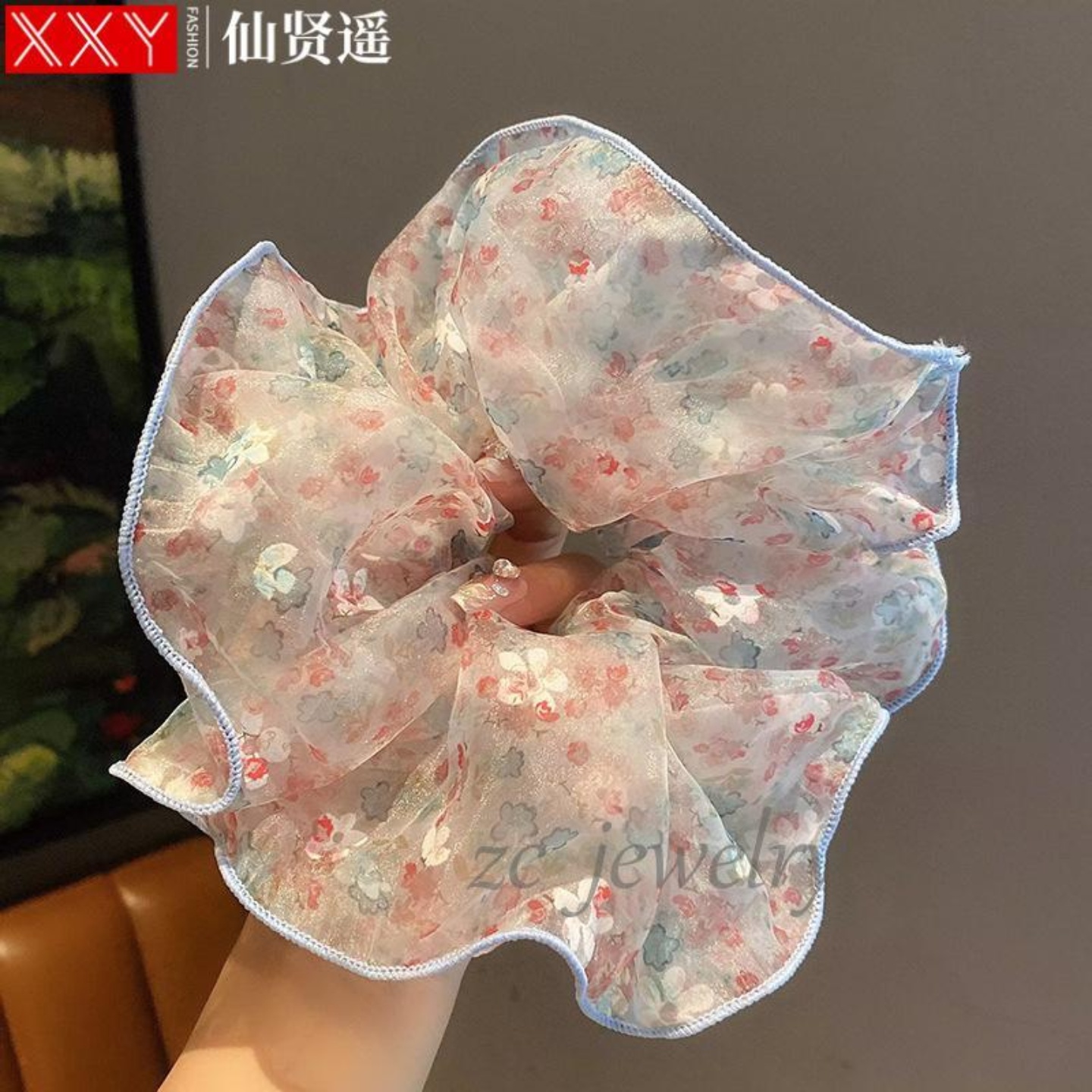 仙贤遥甜美蓬松泡泡纱小清新碎花发圈夏季 感森系扎头发发饰女 新款