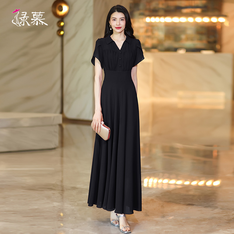 黑色长款 基础款 连衣裙过膝修身 五分袖 打底裙女 紧身新款 2025春夏季