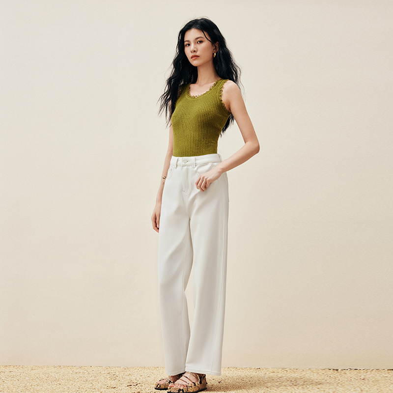 太平鸟高腰阔腿裤 牛仔外套 直筒牛仔裤