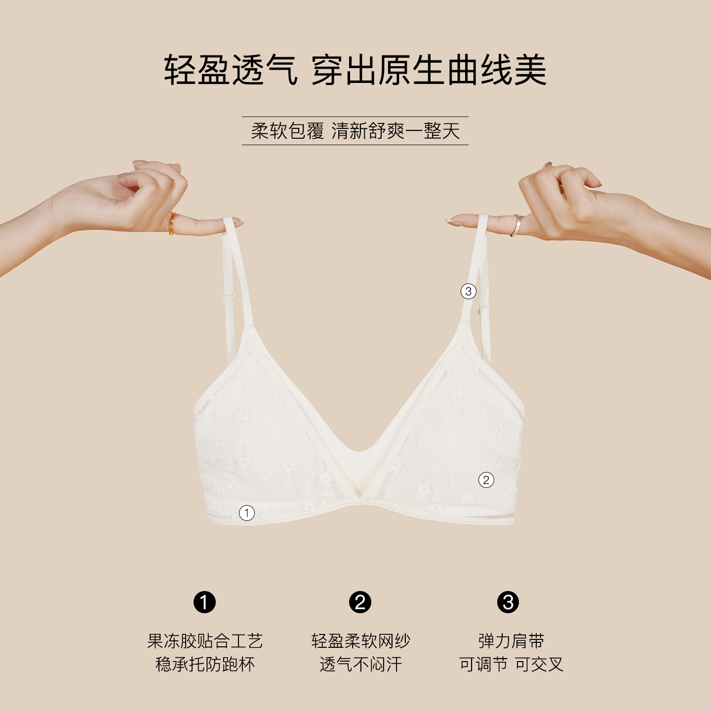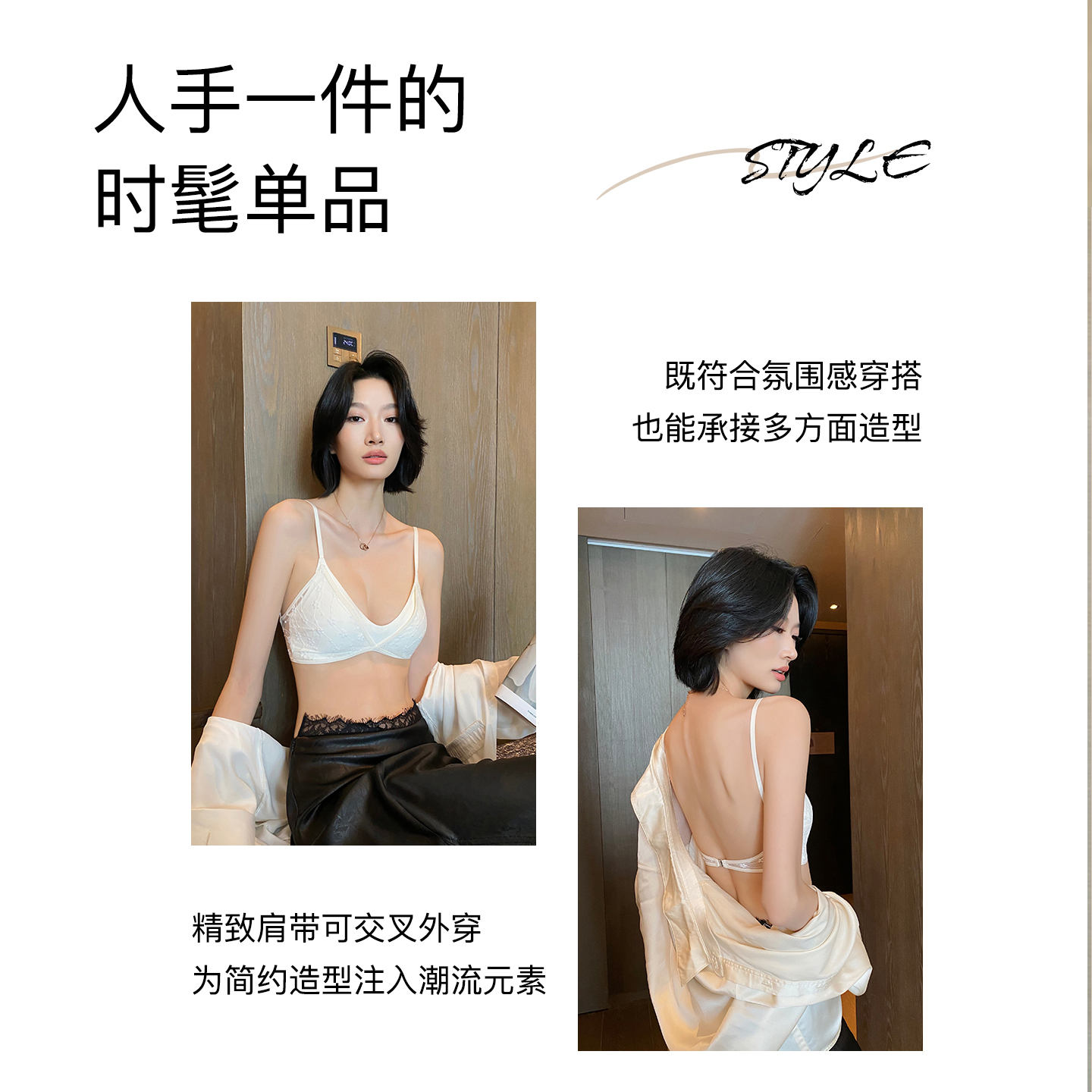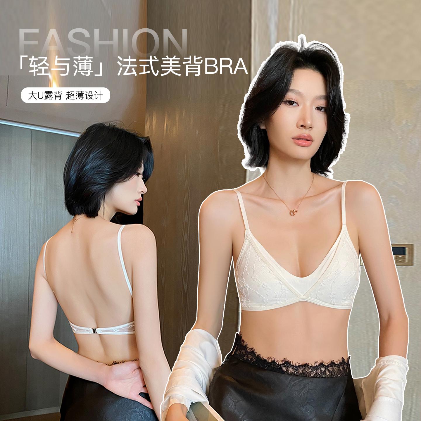 u型美背内衣女夏薄款 蕾丝三角杯文胸 小胸舒适无钢圈性感露背法式