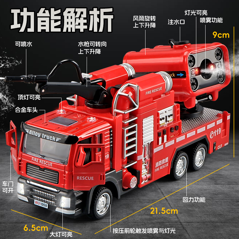 电动排烟消防车模型儿童玩具车仿真合金喷水喷雾男孩大号救援摆件