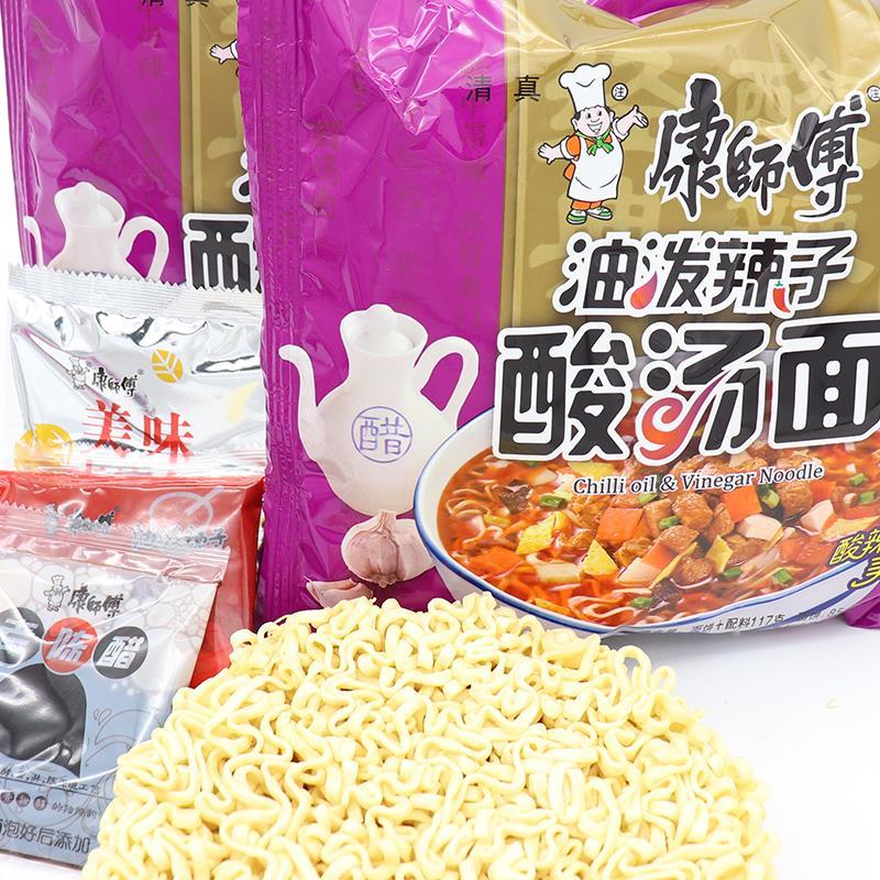 速发康师傅油泼辣子酸汤面方便面牛肉面宽汤面泡面酸面饼五连包速
