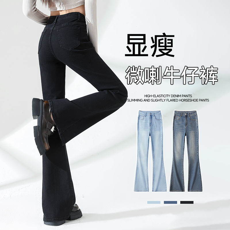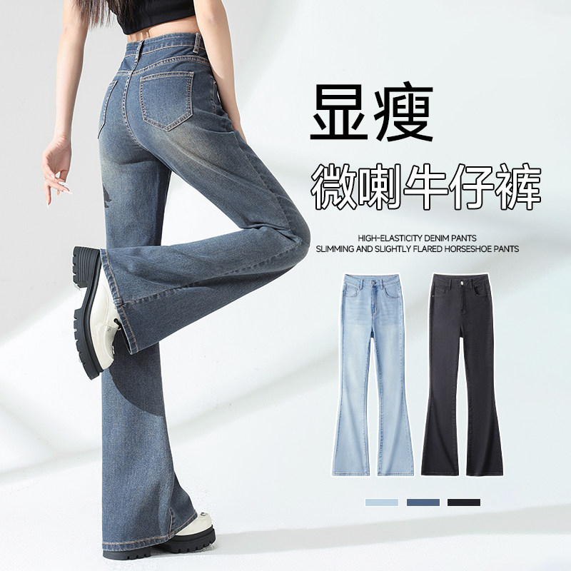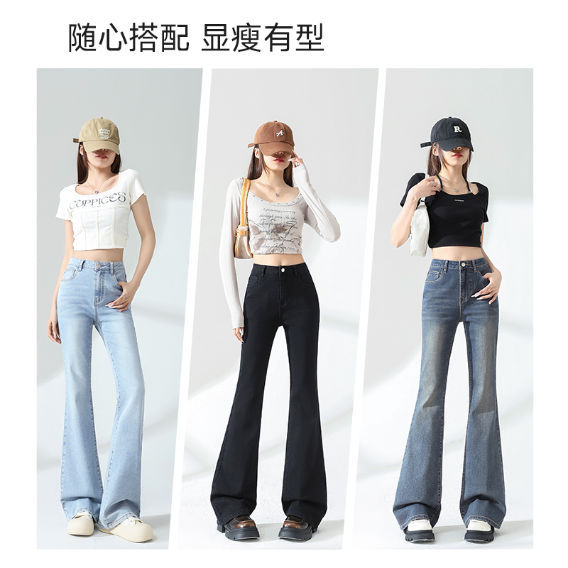Sixty2025秋冬牛仔裤 广角裤 女高腰修身 微喇叭裤 复古洗水 窄版 Miss