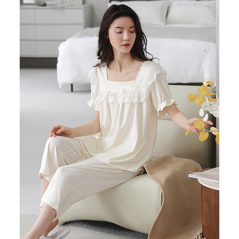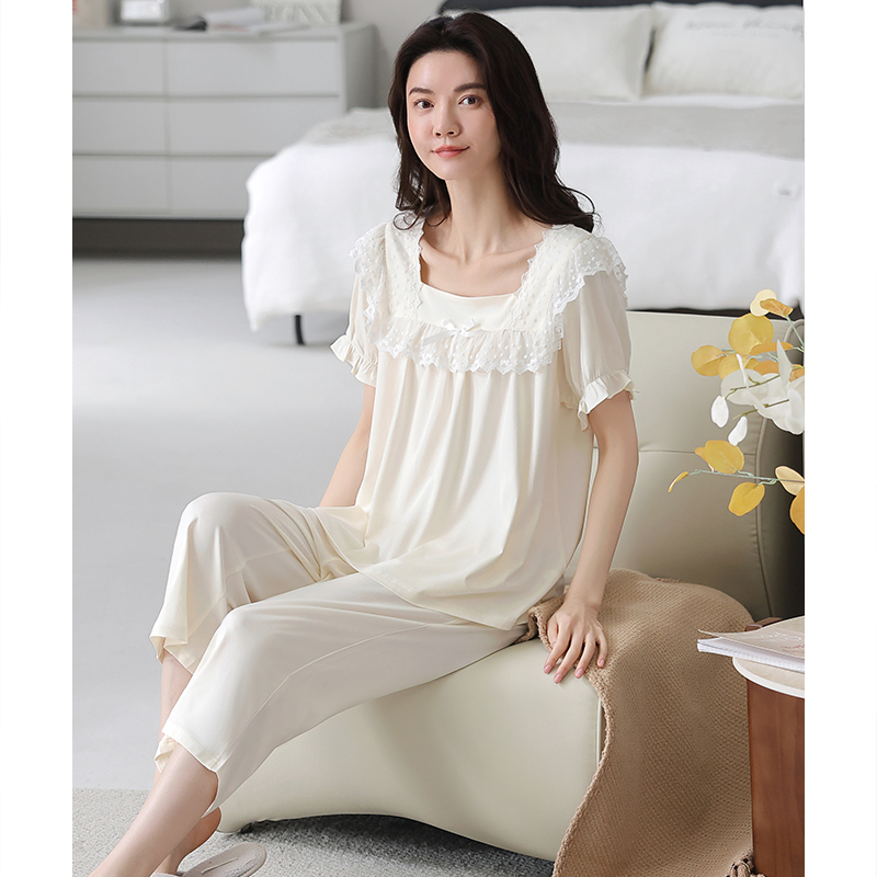 简约女士家居服套装 宽松新款 果壳冰丝睡衣女春秋款 Gukoo
