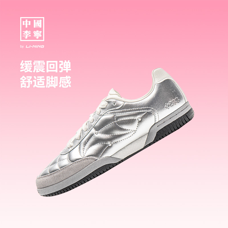 新款 男女情侣鞋 芭蕾鞋 薄底休闲鞋 子 中国李宁乒乓 银色运动鞋 板鞋