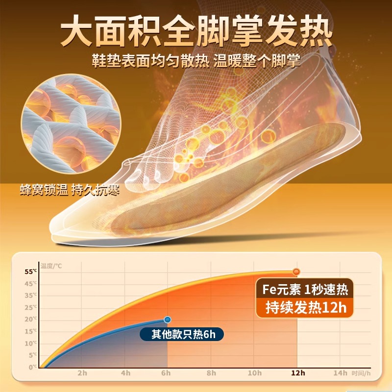 艾草发热鞋 12自加热充电脚底 垫女可行走自发热暖足贴男暖脚宝冬季