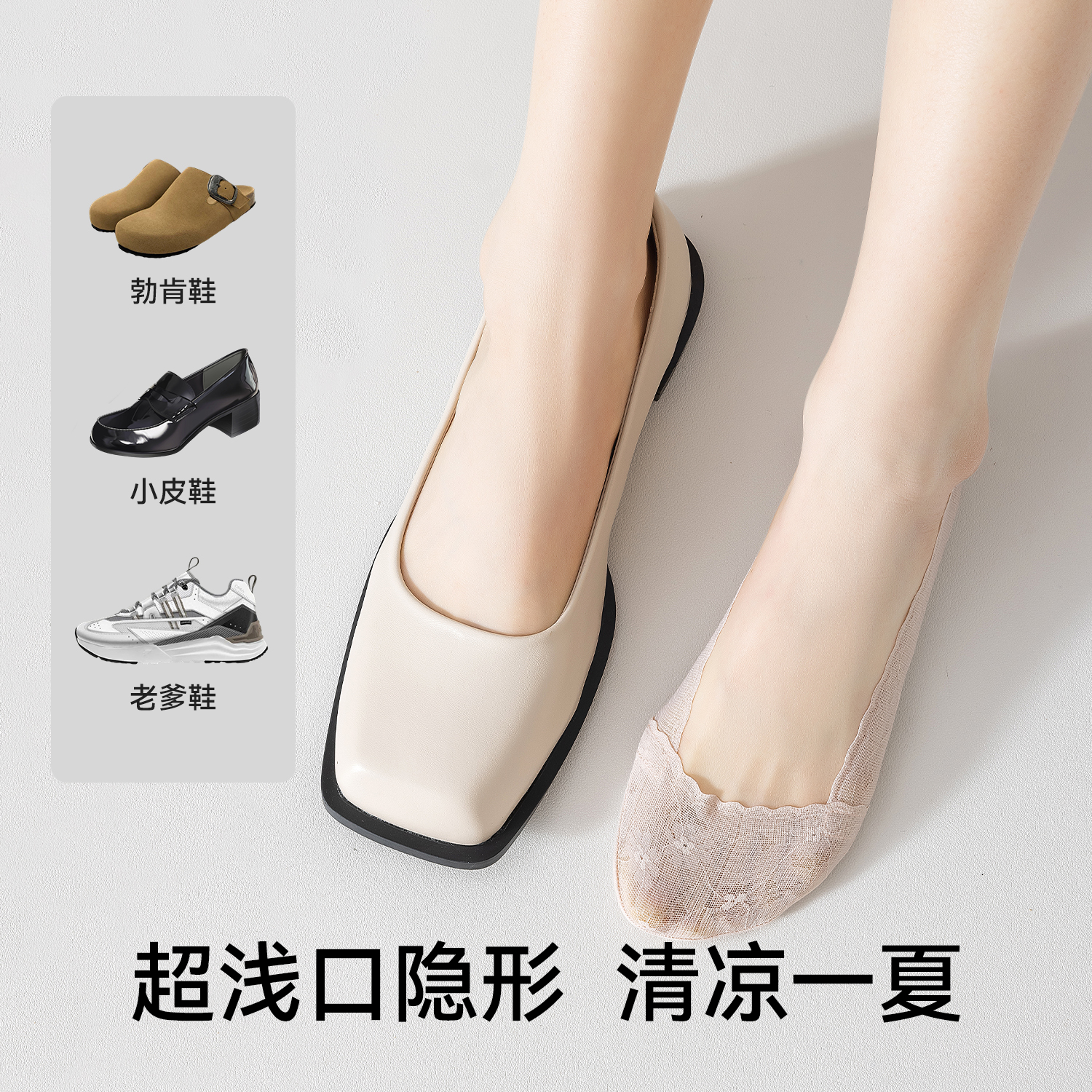 都市丽人夏天轻薄袜子蕾丝边船袜女防滑不掉跟纯棉底浅口隐形冰丝