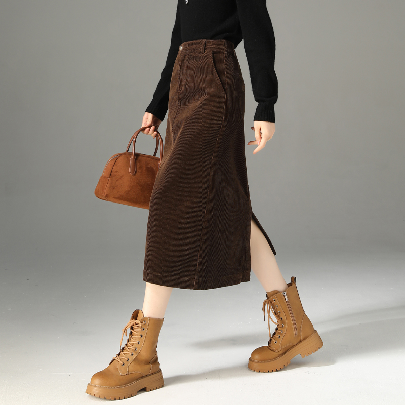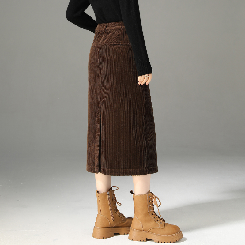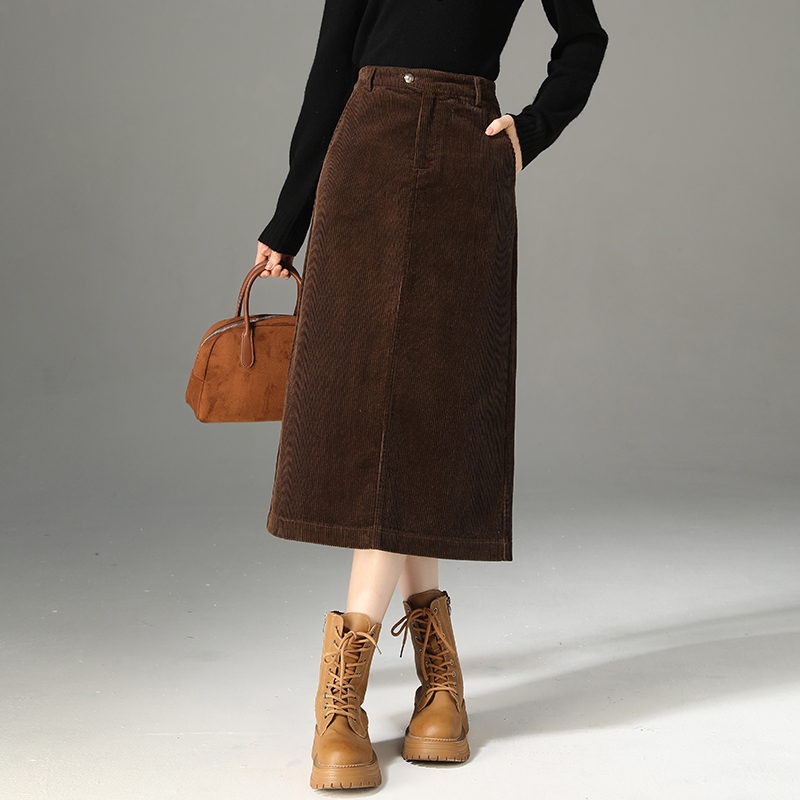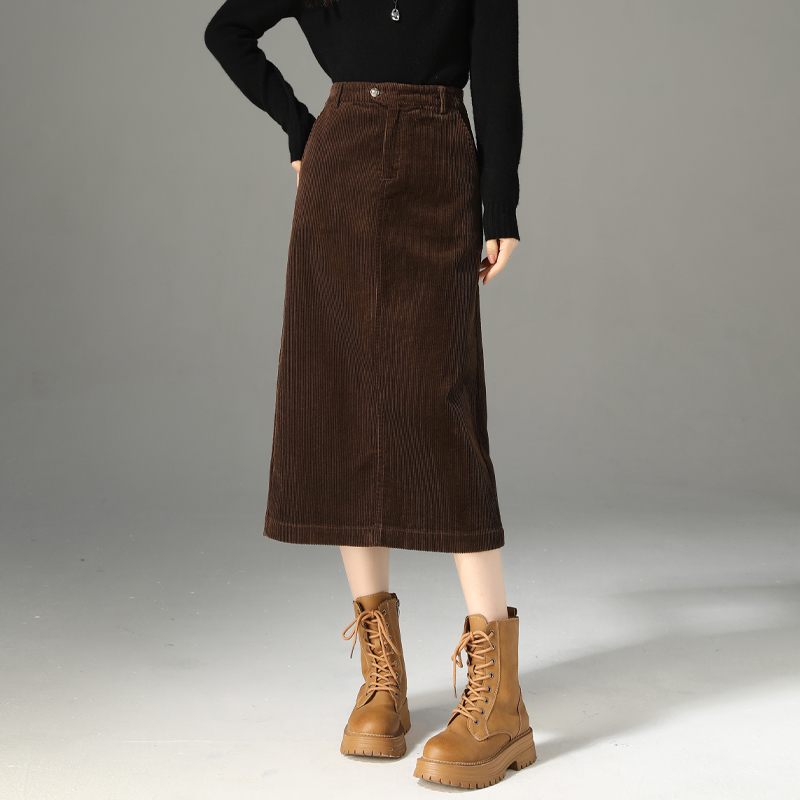 美拉德咖色灯芯绒半身裙女秋冬微胖大码 百搭高腰遮胯a字百褶短裙
