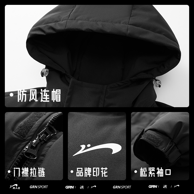 班尼路棉服男秋冬季 外套加绒保暖摇粒绒内搭卫衣男夹克上衣棉袄A
