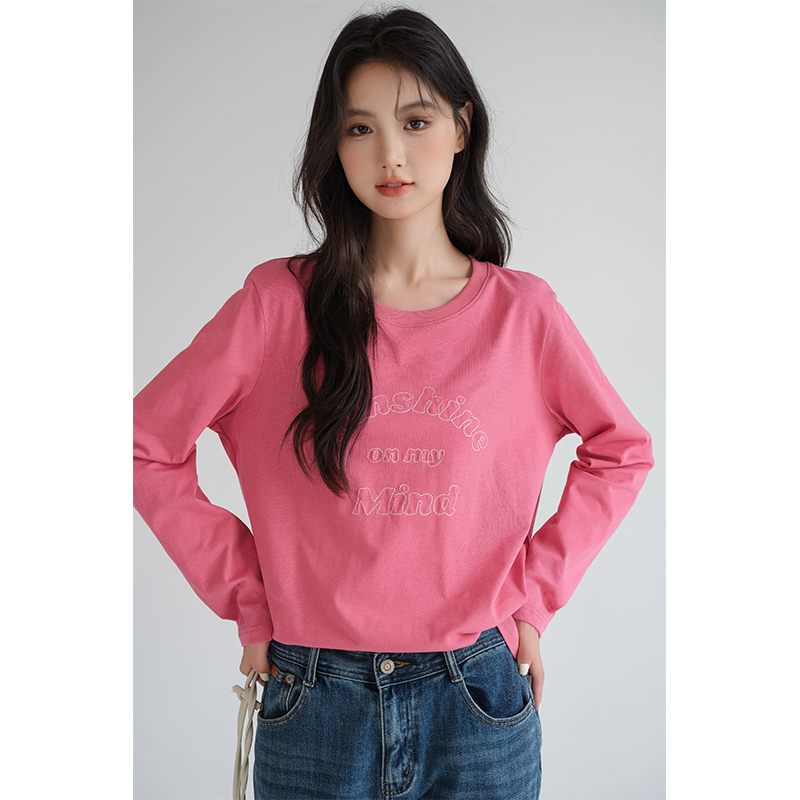 新款 蓝若水大码 T恤胖mm秋季 字母刺绣宽松长袖 甜美打底上衣 女装