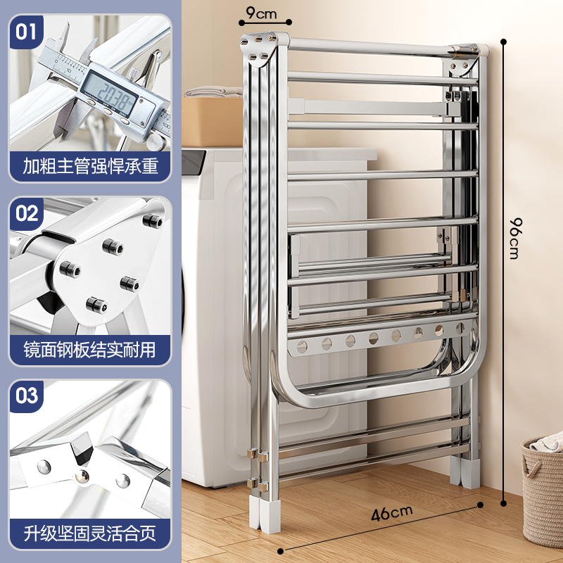 顶天立地晾衣架卧室阳台置地式 单杆伸缩折叠升降挂晾晒收纳架加厚