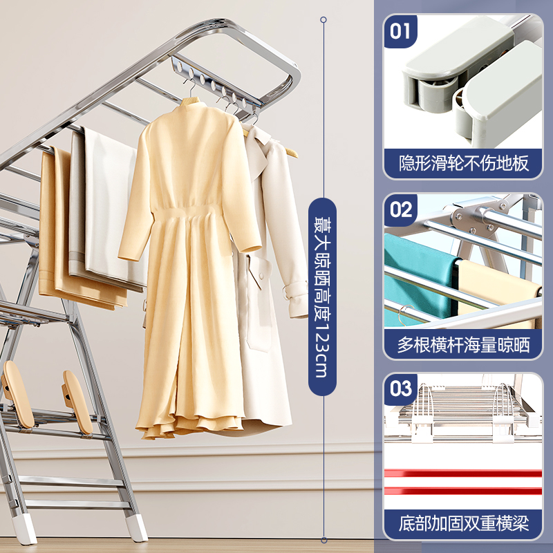伸缩衣架阳台晾衣晾晒落地家用晾衣架室内卧室置地 升降晾晒衣架