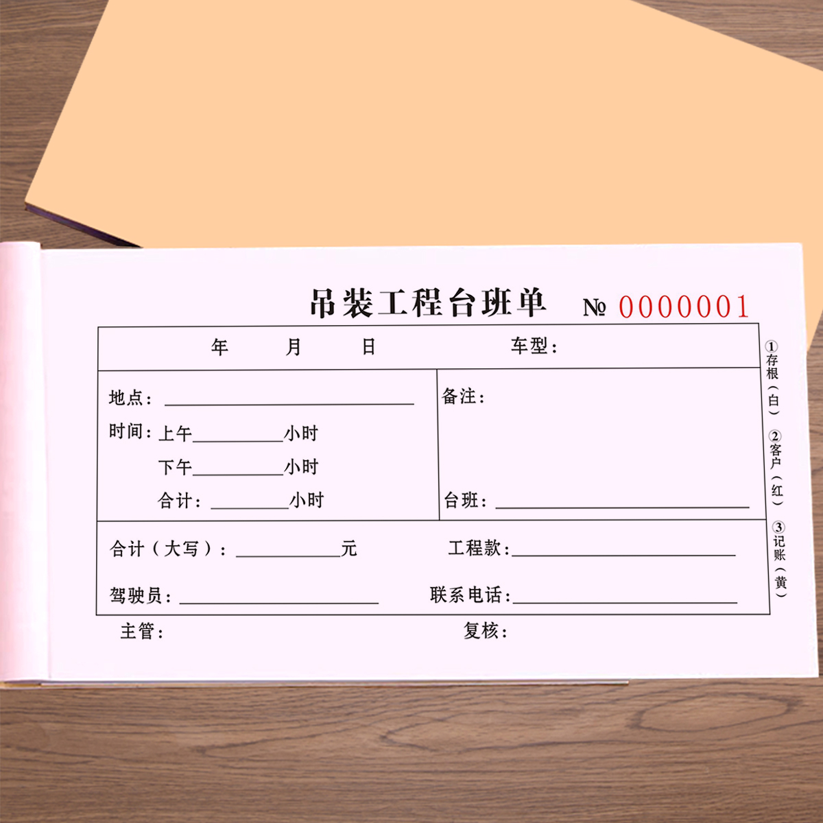 工程台班单二联三联工程机械施工结算单台班量签收单签证单三联轮胎履带起重机记工签字签单本 吊装 2本 包邮