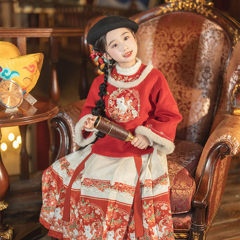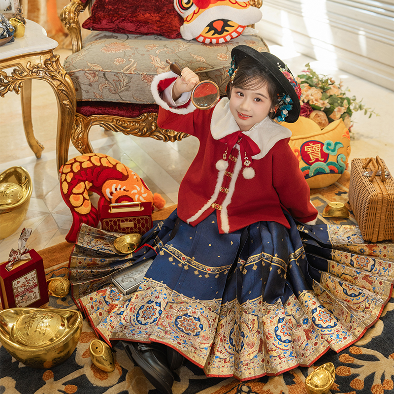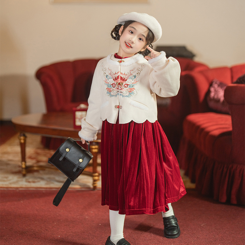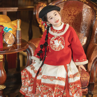 国风观山见童装 刺绣工艺 汉服女童2025秋冬拜年服女童加厚保暖套装