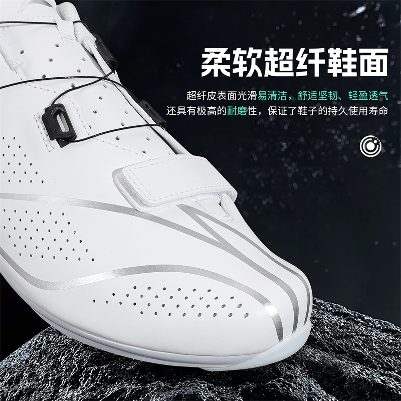 男无尽 专业白色骑行鞋 Santic森地客碳纤维底公路锁鞋 竞技单车鞋