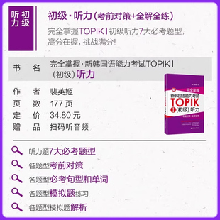 全真全套模拟题韩语topik初级1 备考2025.新韩国语能力考试TOPIK初级语法 听力 阅读 2级书籍3年真题2回模拟考级详解练习 词汇