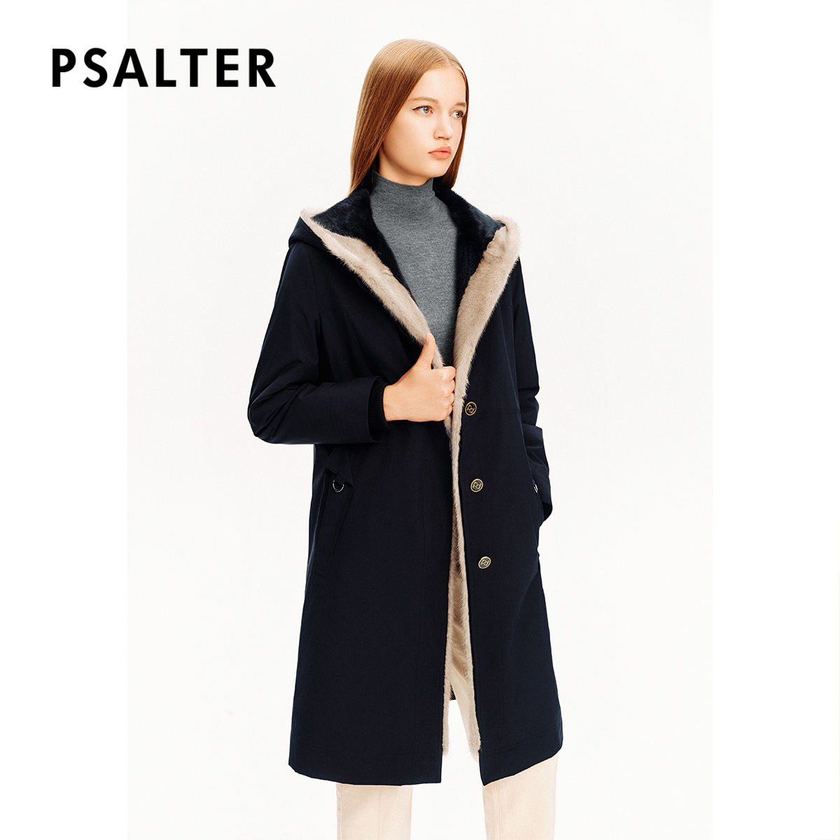 诗篇专选可拆卸水貂毛内胆两穿简约连帽长款 尼克服皮草冬款