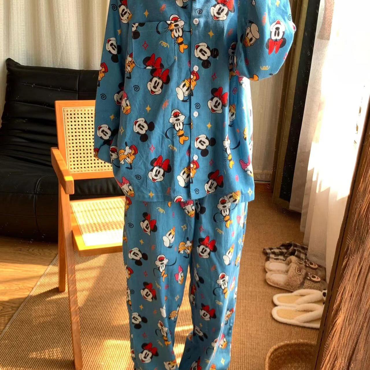 长裤 印花长袖 家居服可外穿 可爱软萌磨毛睡衣娃娃领套装 蓝底米奇