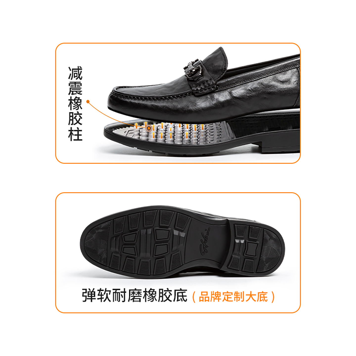 一脚蹬软底透气真牛皮通勤乐福鞋 沙驰男鞋 商务工作正装 皮鞋 男士