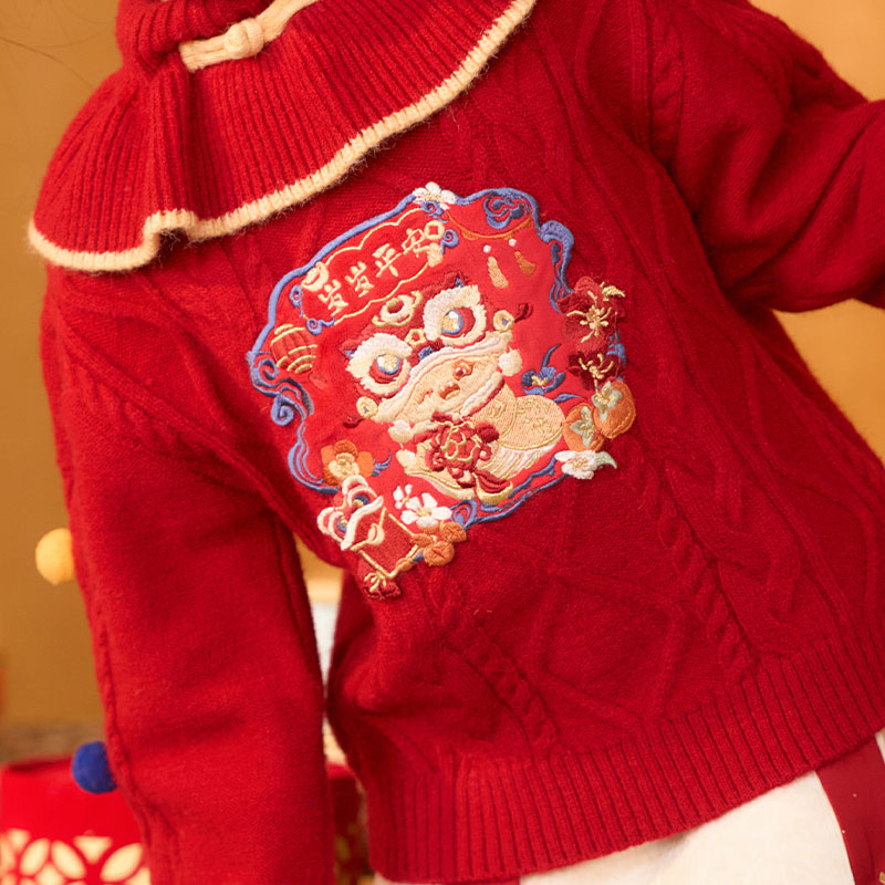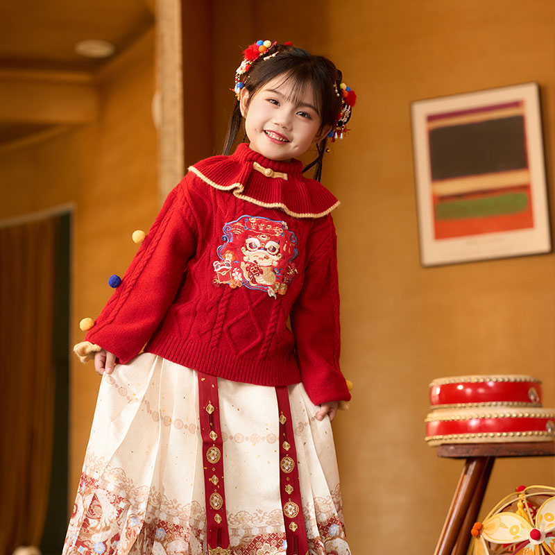 新款 十三余童装 国风百搭针织毛衣冬季 新中式 年服 金蛇拜岁