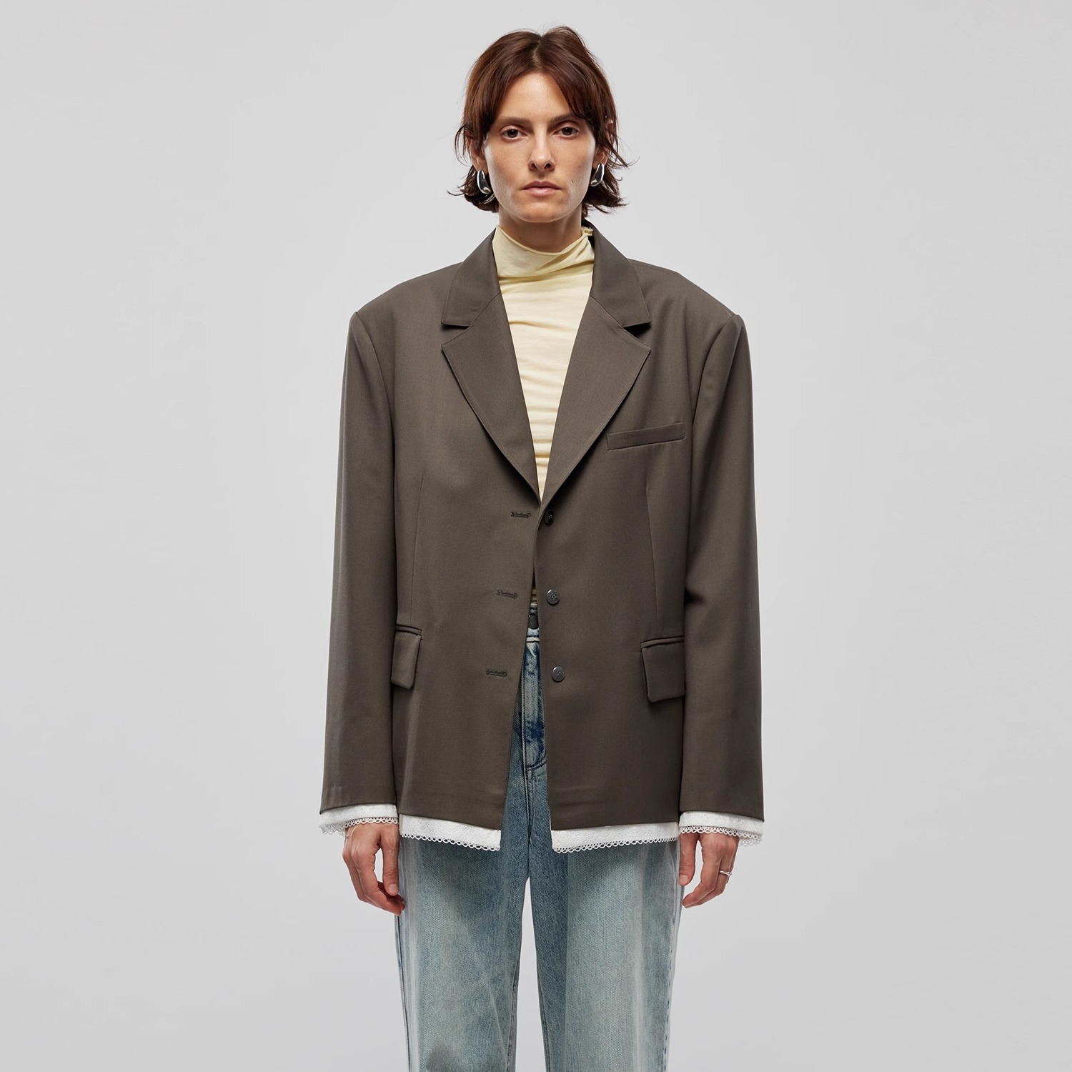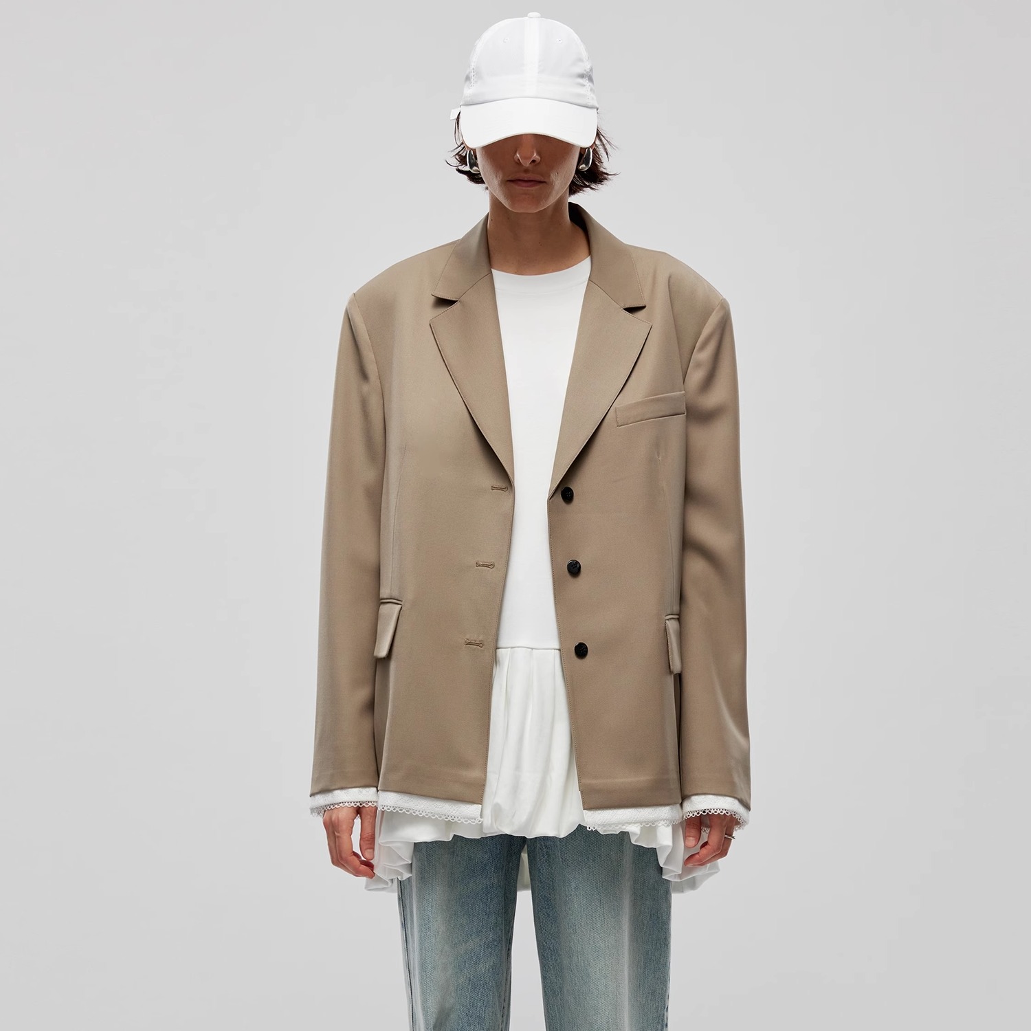通勤男女秋季 拼色刺绣混纺西装 西服外套 陈伟霆同款 canotwait