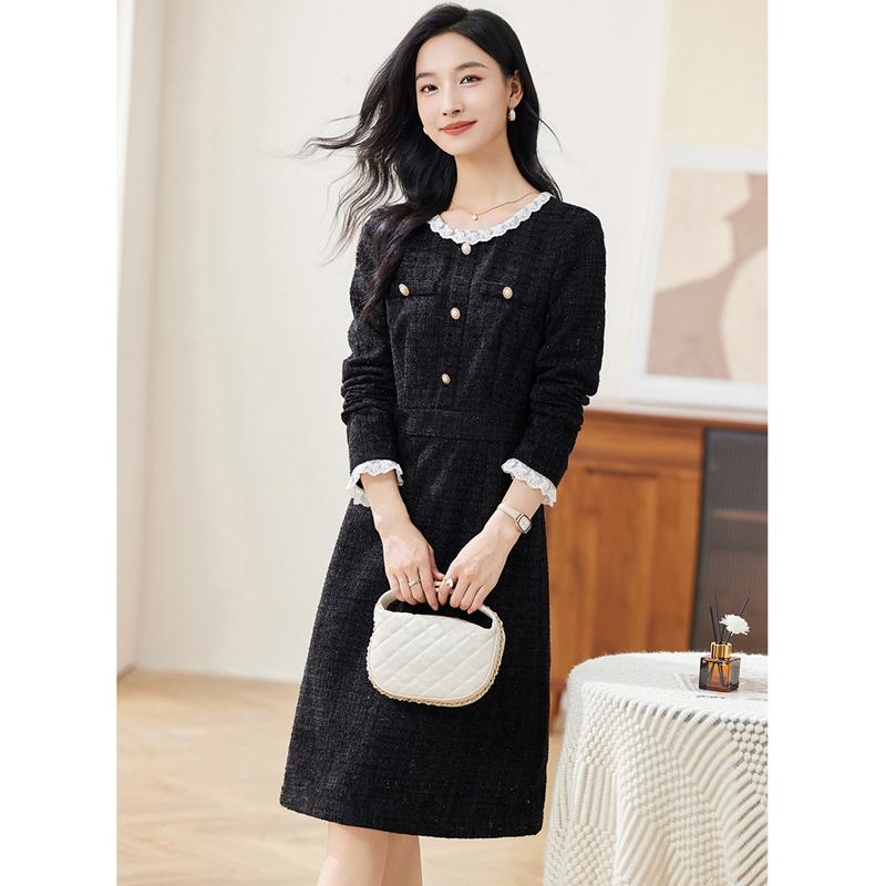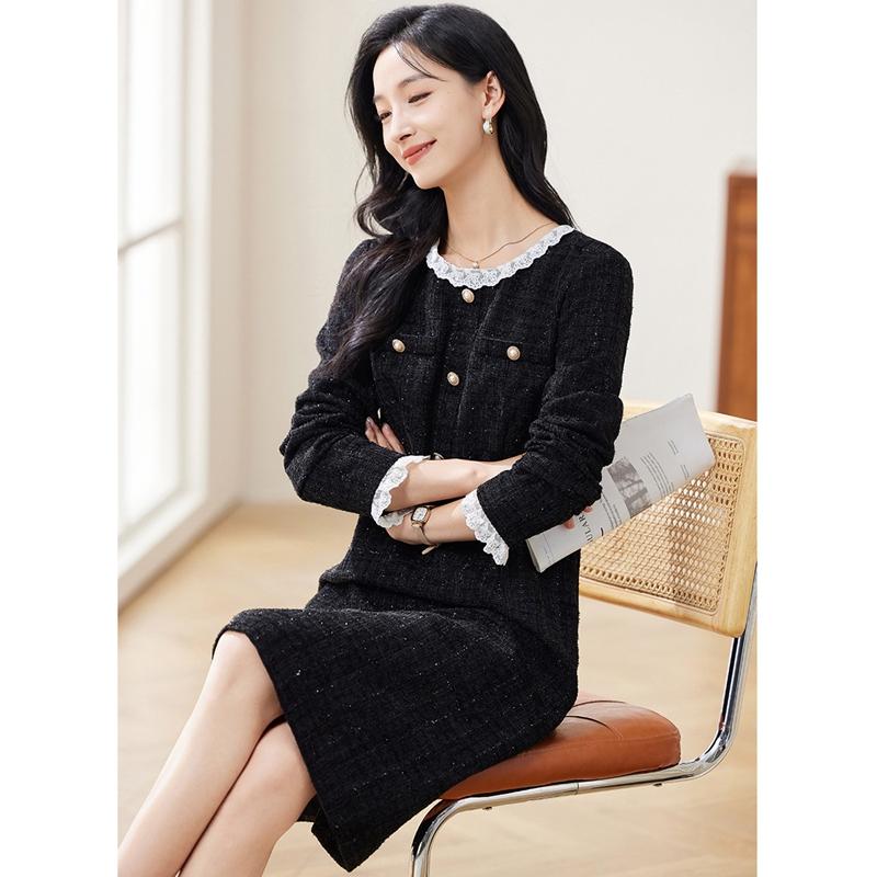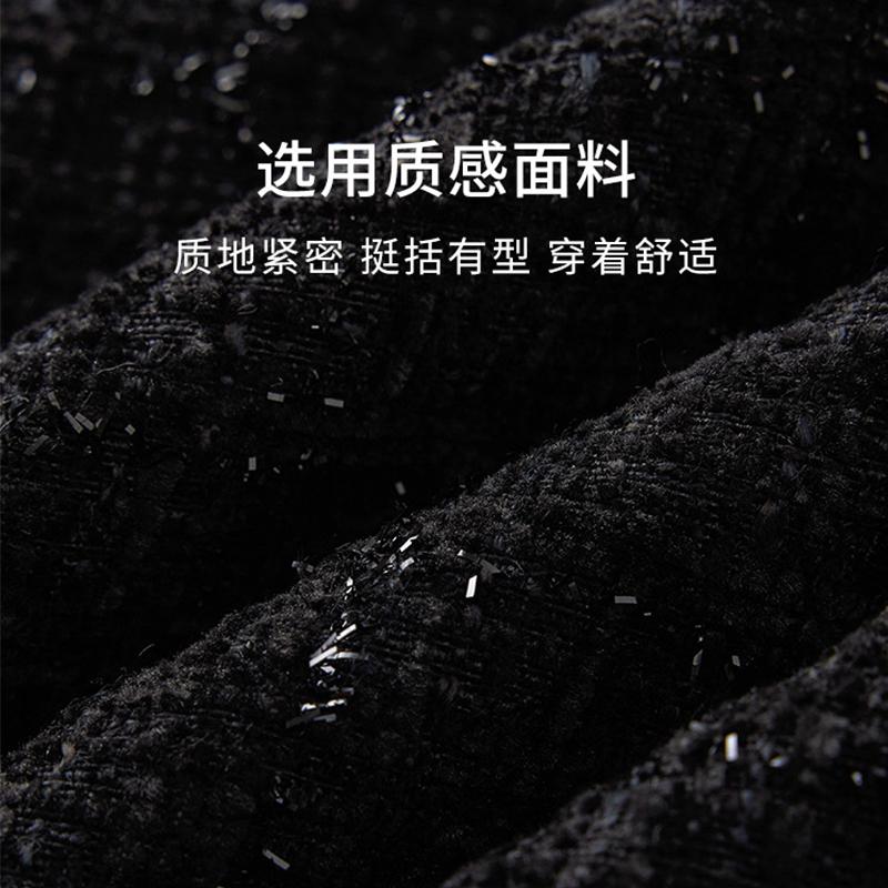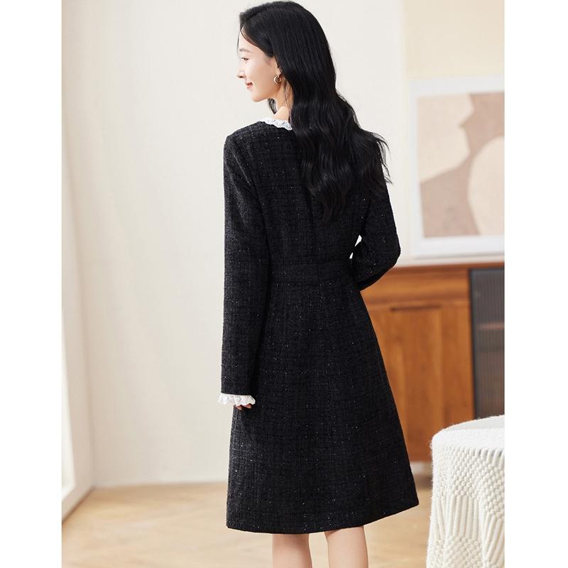 西式 爵莱菲大码 新款 娃娃领黑色小香连衣裙女士2025秋季 法式