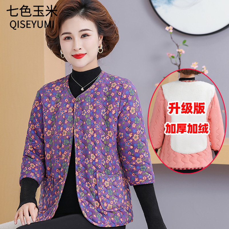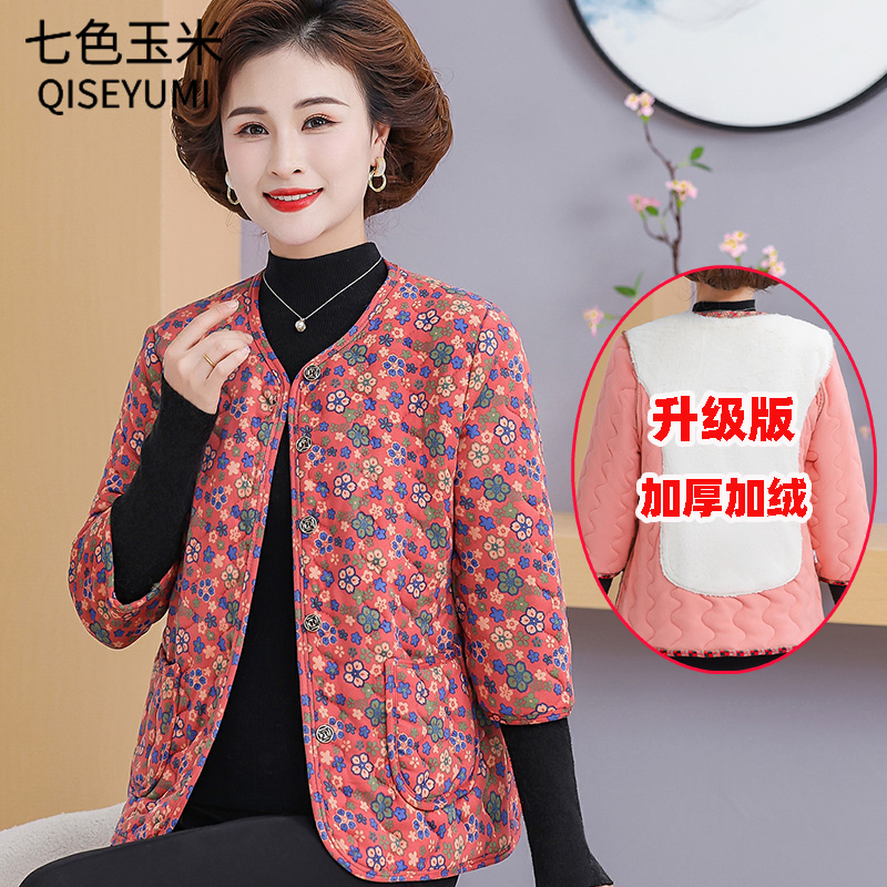 棉衣妈妈半袖 格子马甲加绒加厚马夹七分袖 棉袄 中袖 中老年人女冬装