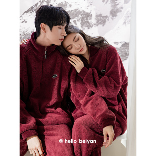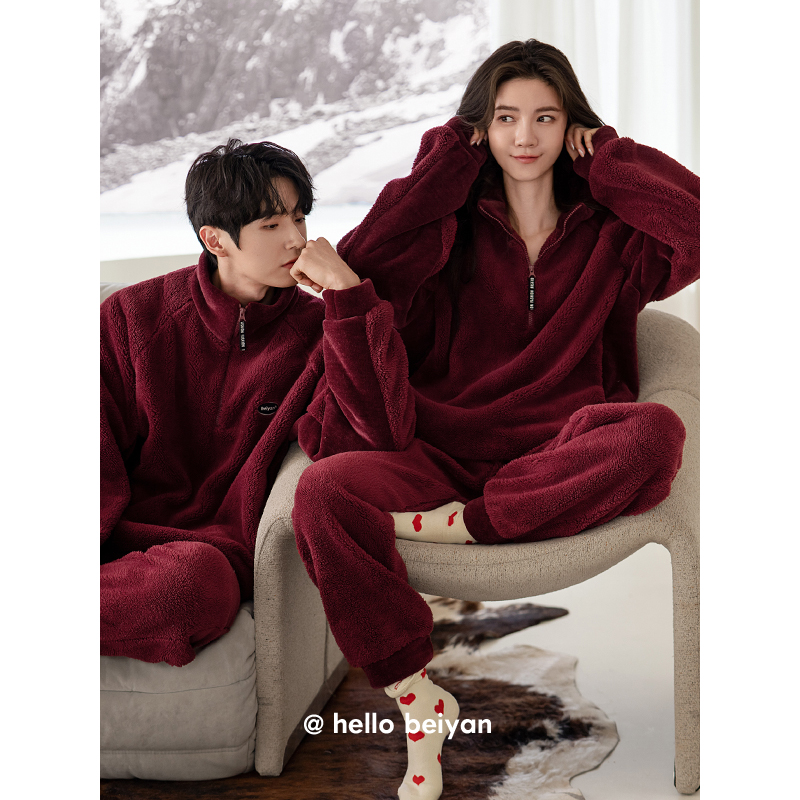 家居服套装 芬腾蓬蓬绒情侣睡衣女秋冬季 保暖抗静电珊瑚绒青年男士