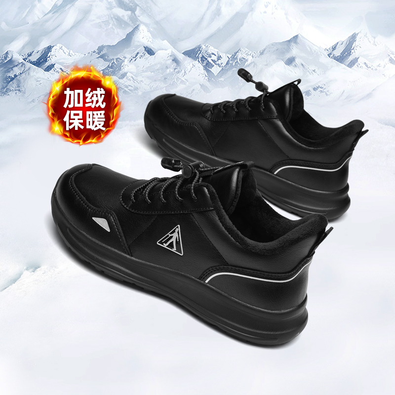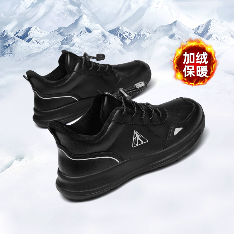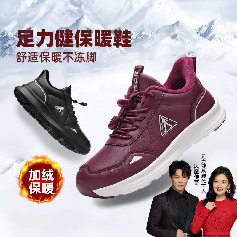 皮面休闲健步女鞋 加绒保暖棉鞋 中老年妈妈冬季 足力健旗舰店老人鞋
