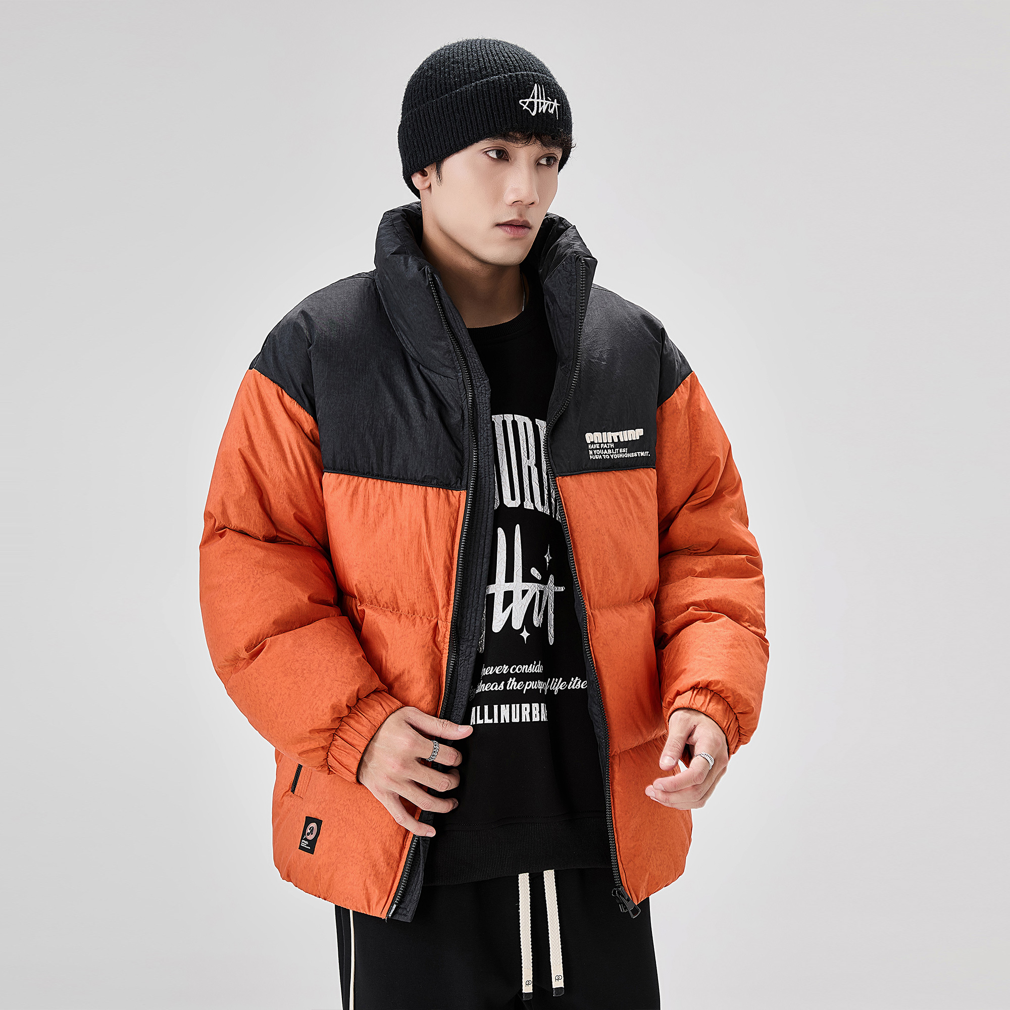 潮牌短款 美式 面包服加厚保暖情侣外套 拼色立领羽绒服男冬季 ALLIN