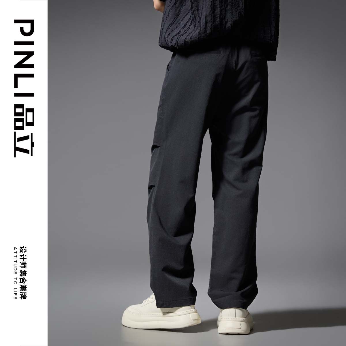 女春秋新款 休闲直筒慵懒松弛感裤 高腰垂感窄版 裤 子 西装 黑色阔腿裤