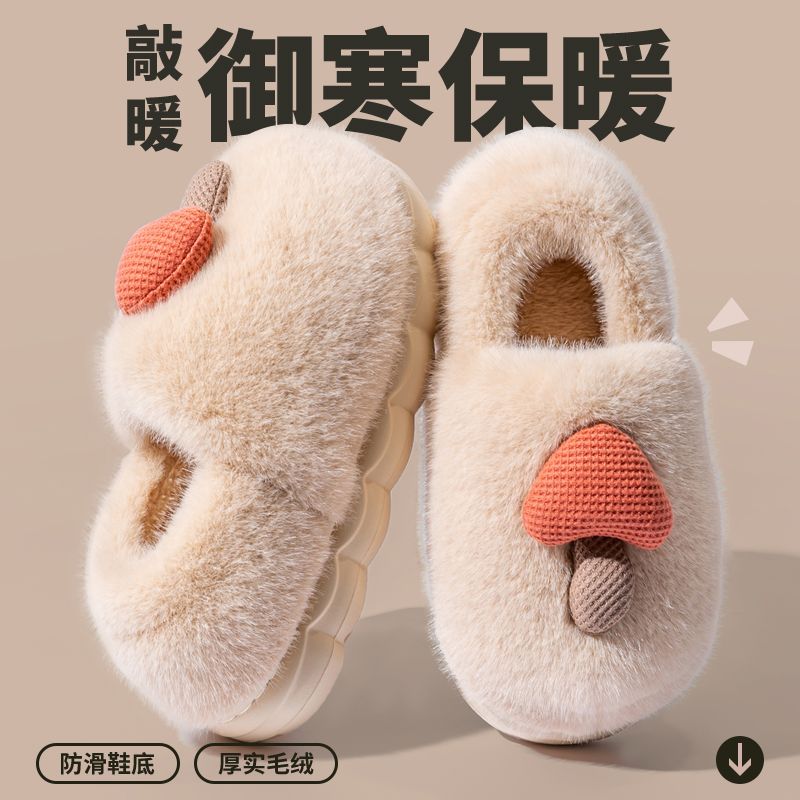室内家居厚底毛绒情侣棉鞋 保暖包跟2025新款 女士冬季 踩屎感棉拖鞋