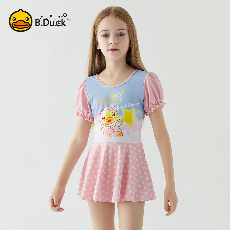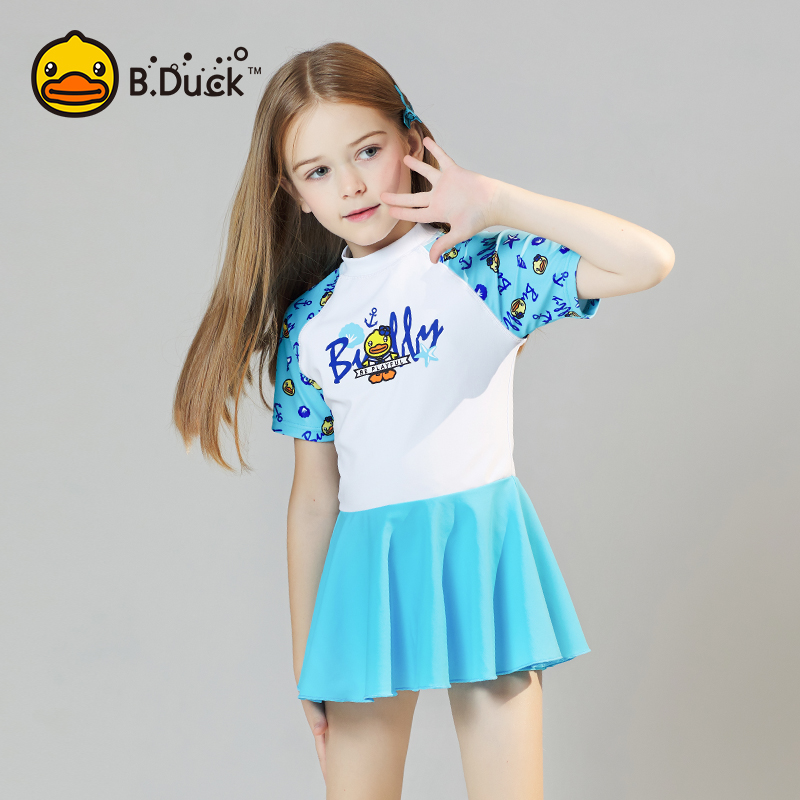 防晒新款 B.Duck儿童泳衣女童连体裙中大童时尚 游泳衣 品牌清仓