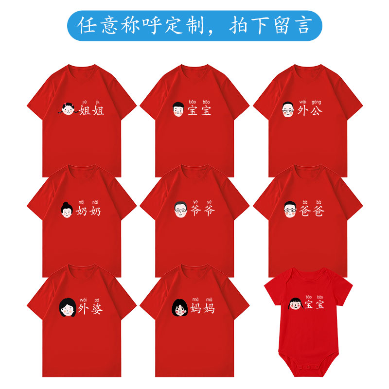 T恤纯棉宝宝短袖 定制文字称呼亲子装 一家四五六口全家福衣服夏季